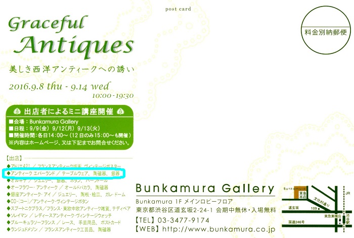 明日より、Bunkamura Gallery『 Graceful Antiques~美しき西洋アンティークへの誘い~ 』に出展致します。