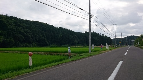 案山子さん達に見守られながら、安全運転で、先を急ぎます=3=3=3