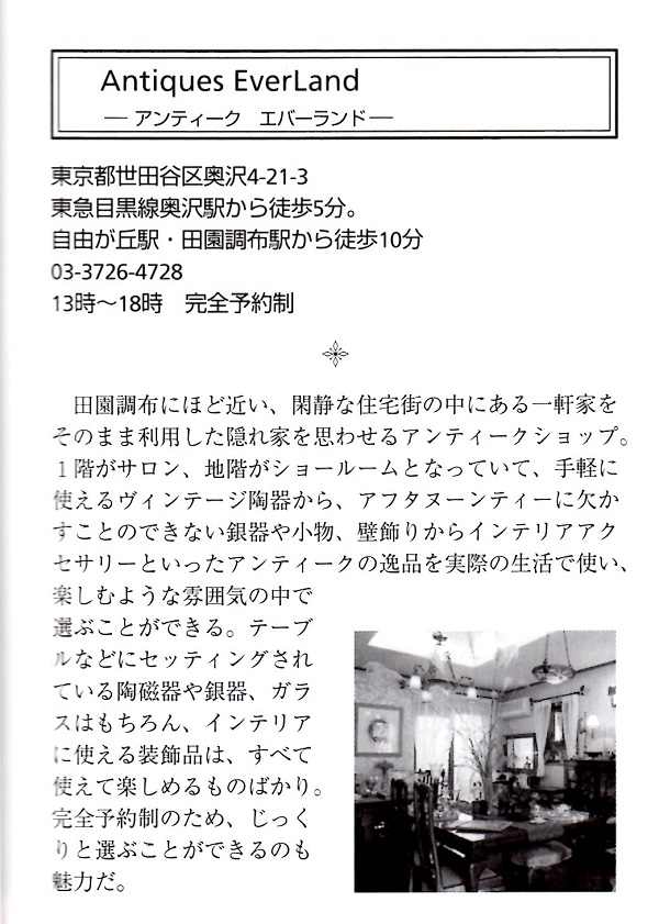 メディア掲載情報 > アンティーク家具と暮らす(目の眼 別冊 西洋アンティーク) 2022年10月04日 Living with Antique Furniture アンティーク家具と楽しくつきあっていますか。(当店納品先紹介) ANTIQUES SHOP GUIDE «前 次» イベント情報