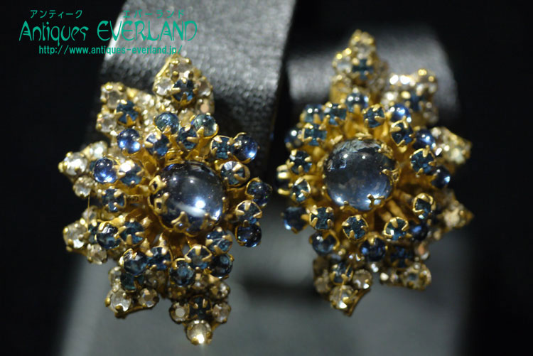 ひと言 | アメリカン・コスチュームジュエリーの女王と呼ばれるミリアム ハスケルですが、そもそもその意識の高さが、女王と呼ばれるに相応しい卓越した数々の作品を世に送り出させたのでしょうか。 一貫して、「本物以上に最高のジュエリー」を追求し、「コスチュームジュエリーは模造品を使用した物」という認識を変え、貴重なジュエリーとして捉えていた様です。 コスチュームジュエリーに対する並々ならぬ愛情が、素材の仕入れや、加工方法の追求、パーツを接着剤を用いず細いワイヤーで留める方法、そのワイヤーワークを美的にそっと隠すためにもう1枚プレートを貼る・・・等の工夫へと駆り立てた様に感じます。 落ち着きと深みを湛えた神秘的なブルーが印象的なイヤリングです。 ハスケルは、パッと見ただけでは分からない様な、小さな気の利いた仕掛けを複数用い、このハスケル特有、唯一無二の雰囲気を出している様で、ブルーのラインストーンとクリアーのラインストーンの間に、同じ様な小さいサイズのカボションカットのガラスを入れています。 メタルは、立体的に組み合わされ、裏から見ると、葉の部分、その葉脈の部分、額の部分と見事に構成されていることが分かります。 完璧な美とは、小さな行いの蓄積から成る、ということなのでしょうか。 |