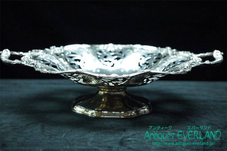 シルバー 高台付ダブルハンドル バスケット [47-10]