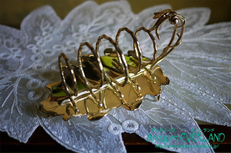 ひと言 | どんぐりの実と葉を忠実に再現した、ボタニカルなトーストラックです。 凹凸の有る帽子を被ったどんぐりがちょこんと先端に付いている様は、本当に、可愛らしいです。 葉に関しても、葉脈が刻まれ、反り加減までもが自然そのものです。 鏡面部分に緑が映り込むと、益々生き生きして参ります。 ヨーロッパに於いて、どんぐりは、「生命」「多産」「永遠の命」「成功」「希望」「可能性」の象徴とされ、お守りにされて参りました。 本来、イングリッシュ ブレックファストのトーストは、三角に切った、薄いものです。 三角トーストを立てると、朝から元気が出てきそうな、どんぐりトーストラックです。 |