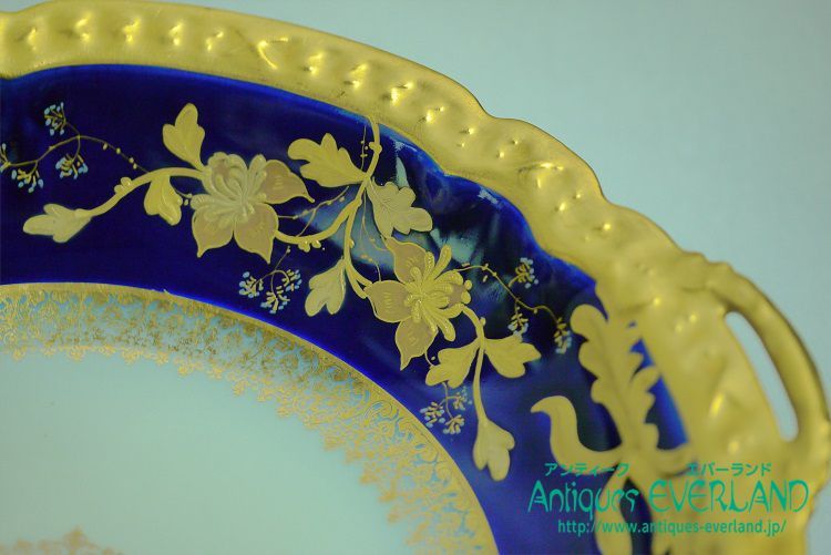 ひと言 | ancienne Maizon Gerardは、リモージュにて1798年創業のテーブル磁器メーカーです。 思わず息を呑む美しさです。 「蒔絵」を連想致しました。 当時のフランス人が、如何に日本美術を好み、影響を受け、誇り高き自国の文化に取り入れ、新たな美を完成させたか、という事を感じさせるものがございます。 「金色」と一言では表現し尽くせない、色味(鮮やか、落ち着いた)や質感(シャイニー、マット)の異なる様々な金色を巧みに使い分けております。 生き生きと、繊細に描かれた草花を観察してみますと、瑞々しい花弁には、雄蕊・雌蕊が盛り上がり、艶かしい曲線を描く茎の先には、生き生きとした葉脈の葉が見受けられます。 妖艶な花は、白い可憐な小花に点々々と包まれております。 背景は、ガラス質の釉薬を使い、透明感のある青で、光の加減によって、全く異なる表情を見せます。 内側の白い部分も、「牛乳かん」や「杏仁豆腐」の様な、ミルクガラスの雰囲気を持つ釉薬が使われております。 中心部分には、繊細なレースの様な美しい模様が入り、全体の雰囲気を纏めております。 縁周りは、マットゴールドで、リボン付き「籐バスケット」を表現している様で、ポコポコと独特の立体感まで有り、牧歌的な親しみやすさを感じさせます。 本来、チャイナキャビネットの飾り皿ですので、揃えて飾られますと、光り輝く美しさで、お部屋全体を包んでくれるものと存じます。 ○オーバル 双耳深皿 48-4-3 ○プレート 2枚組 48-4-1 ○プレート 48-4-4 |
