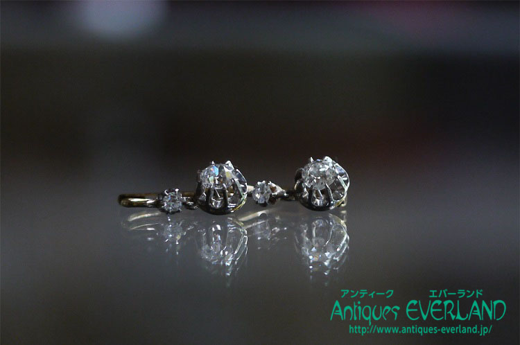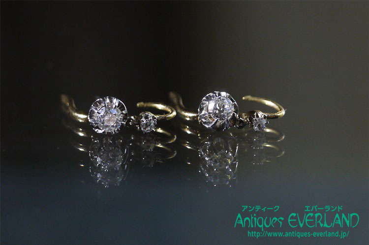 エドワーディアン オールドヨーロピアンカット ダイヤ ピアス<鑑別書付>