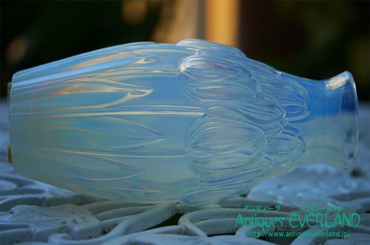 ひと言 | 1860年、シャンパーニュに生まれた、ラリックの創始者ルネ ラリックは、パリやロンドンにて装飾美術を学び、1885年から、ジュエリーデザイナーとして活躍し、1905年には、ヴァンドーム広場に店を構えました。 1907年、コティの依頼で香水瓶をデザインし、好評を博したのをきっかけに、ガラス工芸へと方向転換しました。 1945年に亡くなってからは、子息マルクが継ぎ、それを機に、クリスタルガラスを使うようになりました。 孫娘マリー クロードが、1994年にラリック社の株を売却する迄、同族経営でした。 自然の美をラリック流に優雅に表現し、ぐるりと1周ふっくらしたチューリップが囲み 、春の庭を想い起こさせるデザインです。 オパレッセントガラスですので、光線の影響で、乳白色が、ブルーやオレンジ色に変化し、浮世離れした美しさです。 ラリックのガラスは、1つの作品を仕上げる迄に、凡そ20人もの卓越した技術を持つ職人が携わり、道具や坩堝から自分達で作り、数々の工程を経て、仕上がります。 オパレッセントガラスの場合、他とは一線を画す輝きを生み出す特殊配合のクリスタルの透明性を保つため、坩堝を毎日空にし、新しい原材料に入れ替えるそうでございます。 コールドワークだけでも10名以上もの手作業で仕上げていることが、溢れんばかりの生命感を生み出す要因と存じます。 チューリップ先端より下は、マットな質感で、柔らかに反射される光は、チューリップを、とろ〜んととろみのある様な、不思議なやわらかさを感じさせるものに魅せております。 まるで、脱皮したての蝉の羽を想わせるものがございます。 型ガラス特有の継ぎ目等も修正・除去され、全体的な触り心地も円やかです。 現に返ることのない、夢のままの美です。 |