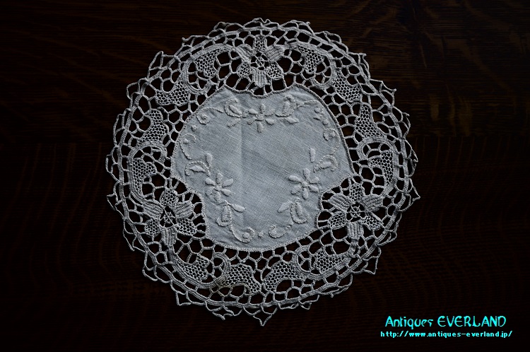 | ひと言 | イギリスで仕入れました、ヴィンテージのドイリーです。 リネン独特の風合いに、やさしい雰囲気の刺繍と、立体感ある手編で、温か味を感じさせます。 当初より、ご奉仕価格でのご提供となります。 |
