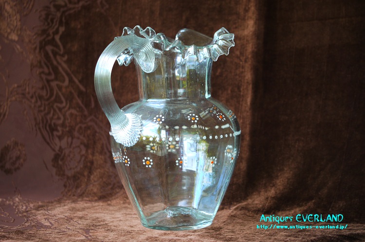ヴィクトリアン セロリハンドル エナメル ウォーター ジャグ 花器 花瓶 ベース