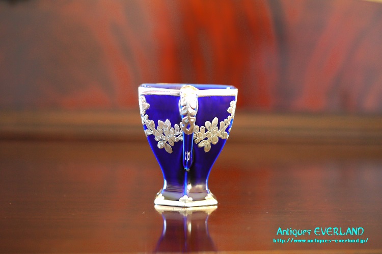 そもそも、シルバーオーバーレイは、1889年イギリス バーミンガムのオスカー・ピエール・エラルドが、純銀でガラスと磁器に装飾を施す、エレクトロプレーティングの画期的な技法を開発したのが始まりです。 1893年にアメリカ ニュージャージーのジョンH.シャーリングが、エラルド同様、エレクトロプレーティングで、シンプルに美しく仕上げる技法を編み出し、特許を取得しました。この技法は、裏側から見ても白色で、無期限に留まるという利点がありました。 シャーリングは、新技法を沢山の人々と共有した為、1895年迄には、ボヘミア、イタリア、フランス、イギリス、オーストラリアでは、素晴らしい作品が次々と生み出されました。 それに負けじと、アメリカ合衆国のメーカーも豊富に作り出す様になりました。1895年〜1920年代後半に掛けて、当時、上流家庭のピアノの存在の様に、シルバーオーバレイは優雅で特別な存在として位置付けられ、流行致しました。