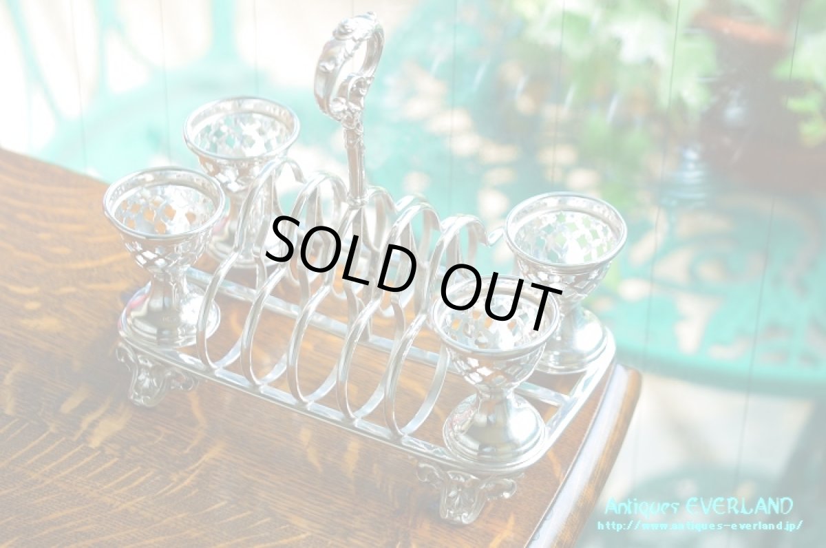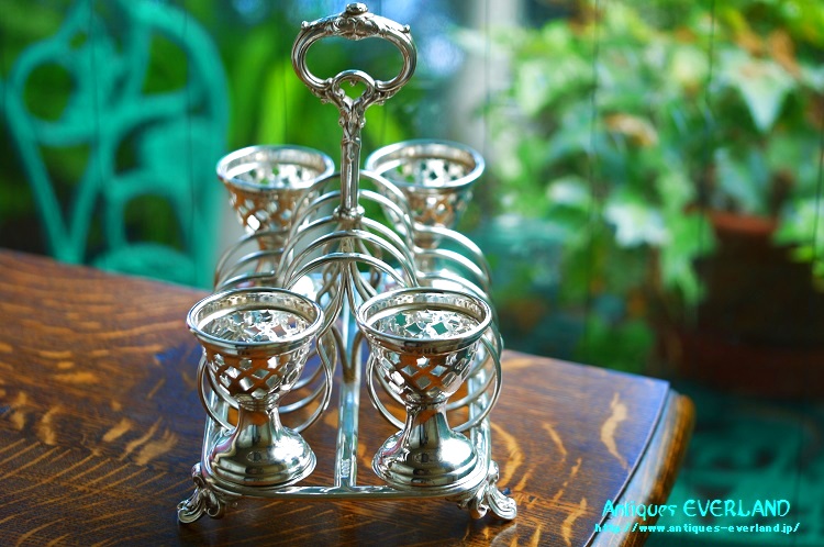 ひと言 | 古典的装飾の重厚なトーストラックでの朝食は如何でしょうか。 「仕切り」は優美な曲線を描き、トーストを取る楽しみがございます。 取外し可能なエッグスタンドも4つ付いておりますので、便利な上に、整然とした美をテーブルに齎します。 エッグスタンドには、ヘキサグラム、ダイヤ、スペードのピアスィングが施されております。満腹・眼福共に得られる逸品です。 |
