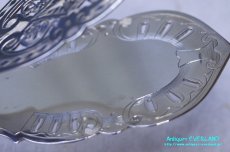 ひと言 | 優れた道具とは、用途以外の効果も齎すもので、使うそばから動作までも、その方ご自身までも美しく魅せてくれるものです。 当時イギリスでは、1つの動作につき、1つの道具が用意されてたものですが、こちらは本来サンドウィッチ専用に作られたトングです。 指で押しますと、バネ仕掛けが作動し、ふんわり、面でサンドウイッチを挟み込みます。 この面白い仕掛が、なかなかどうして男性の心を捉えるようです。 5.5cm程開きます。 曲線と直線、植物文と幾何学模様が組み合わさった精緻な彫刻と、ピィアスィングが、見事。 心に刻まれる美しさです。 |