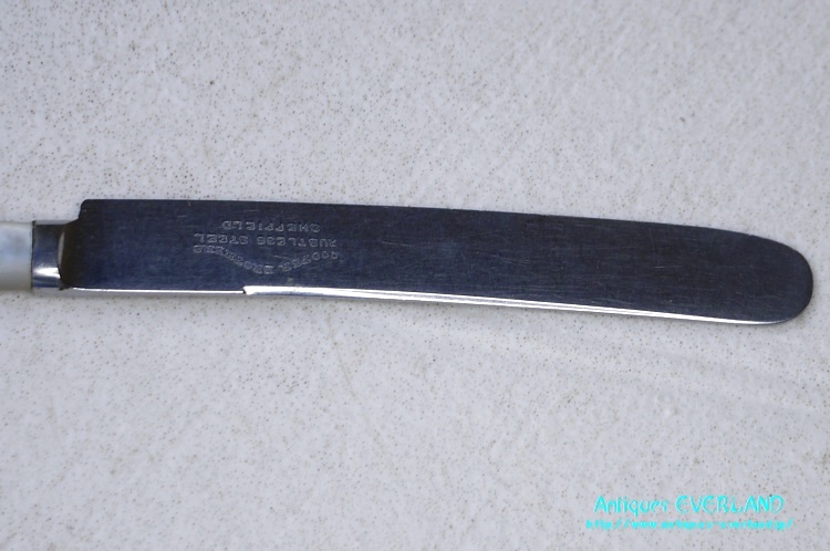 ひと言 | 優れた道具とは、用途以外の効果も齎すもので、使うそばから動作までも、その方ご自身までも美しく魅せてくれるものです。 大変便利なティーナイフ6本とケーキナイフのセットが、薄型オリジナルボックスに入っており、保管も簡便です。 エレガントでありながら、当時新開発の画期的素材ステンレススチール製の刃ということで、お気兼ねなくご多用戴けます。 シルバーと、マザーオブパールの七色の輝きが、研ぎ澄まされたデザインに映えます。 スコーンを召し上がる際、お気軽に、本物のティータイムへと誘ってくれることでしょう。 |