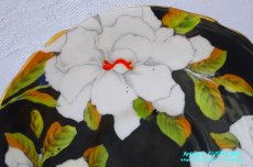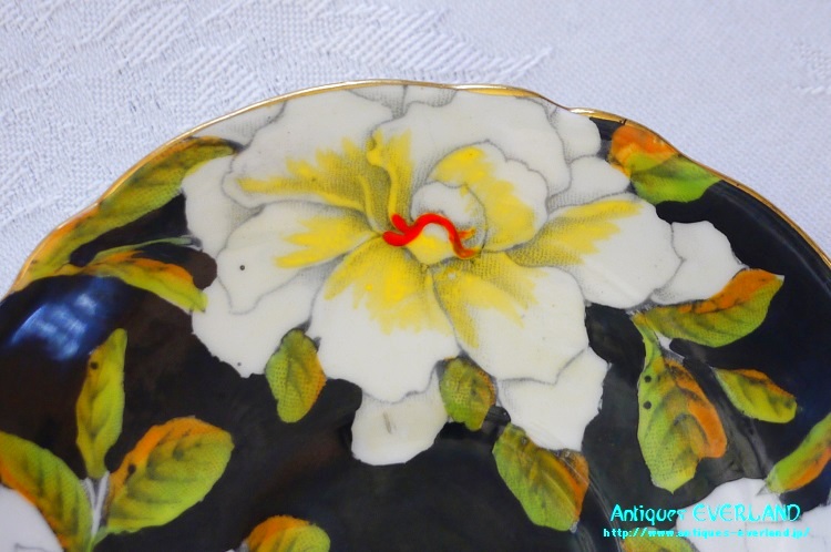 ひと言 | “ To the Bride (花嫁へ) ” とカップ内側中央の底、花弁の一枚に書かれています。 紅茶を飲み干すと、メッセージが現れます。 マグノリアの英語の花言葉には、nobility(崇高)やdignity(威厳)の他に、“perseverance(忍耐)”がございます。 なるほど。 華麗な花の、濃厚な香りまでも漂いそうな豊満な雰囲気は、彩のみならず、質感までも左右する、手彩色によって齎されているものと存じます。 エナメルの様な輝きの漆黒の背景と、鮮やかに彩られた葉が、かえって未だ色の塗られていない花の純潔性を際立たせております。 美しいだけではない、深い意味を持つ、洒落た、大人の、カップ&ソーサーです。 通じ合う、素敵な瞬間をお楽しみ下さいませ。 |