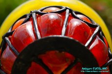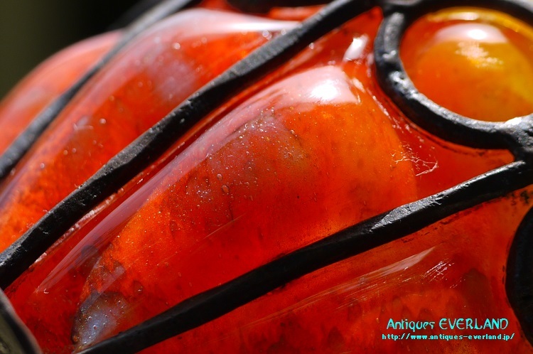 ひと言 | アートガラスの本場ナンシーにて、ドーム兄弟の下修行したシュナイダー(シュネイデル)兄弟は、ドーム兄弟の勧めでアカデミックな研究にも参加し、最先端の美学・芸術の追求に邁進致しました。 独立後、Le Verre Français ならびに Charder (1925年〜)というカジュアルラインと、Schneider というプレステージライン、消費者に合わせ商用ラインを分け、非常に異なる作品展開をしました。 署名のとおり、当Schneiderラインは、パリでも著名なクリスタルガラス店が集中して軒を連ねたパラディ通54番地にて販売するための、最高級の製品でございます。 押し並べて、ヌーヴォー ガラスを見ると、木星をはじめとする惑星の表面を想起し、根源的な力強さを感じさせられます。 こちらの花瓶は、先ず鍛造鉄で枠を作り、ガラスを中に入れ、職人の加減で息を吹き込み膨らませた匠の技です。 黒いボンテージのコルセットの隙間から、熟した果実の様に艶かしいガラスのふっくらと盛り上がる様は、正に官能的。 色は、化学者Babilleによって作り出されました。 フランスの芸術の発展は、化学や物理など科学先進国であることと密接に関係していると思わずにはいられません。 ガラスそのものの質感と相俟って、どくどくと流れるような生きた感覚を伝えます。 |